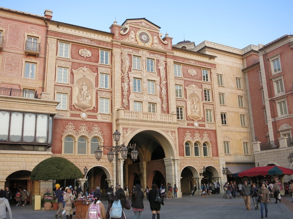 This was part of the very elaborate facade of the Hotel MiraCosta, which is a gigantic luxury hotel that's actually part of the main thoroughfare in DisneySea, meaning you can stay here and actually be inside the park. The hotel room windows overlook the harbor plaza. I don't even want to think about how much it costs to stay in this hotel, but it'd be like having a hotel room right on Main Street in Disneyland. Neat stuff, likely only for people spending thousands on a vacation here.