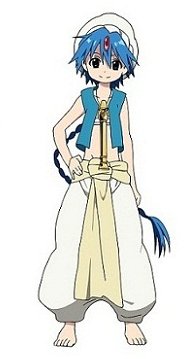 Sinbad, the sort of mentor figure to the three heroes, comes from the third most famous (and contested in terms of veracity and age) tale in the original book, The Seven Voyages of Sinbad the Sailor. Unlike in Magi, the original Sinbad is a merchant from Baghdad who has a spate of luck that is a combination of remarkably awful and amazingly awesome. He sets out on seven voyages, gets shipwrecked each time, and through his wits and charm somehow manages to get home wealthier than when he left. None of this takes away his basic humanity, however, and each time he returns home he donates part of his wealth to the city's poorest, and his story is framed by a jealous porter named Hindbad learning that Sinbad made his wealth the honest(ish) way and what a swell guy Sinbad really is. Clearly Ohtaka took those seven voyages and made them into Dungeon quests, because her Sinbad has seven metal vessels. He also founds his own kingdom, Sindria, and it is accounted one of the best places to live because of its ruler. In some ways Sinbad is the closest to his base character, but there's a sort of unsettling quality that Ohtaka gives him that makes you wonder whether he's really as good as Alibaba and Aladdin are assuming. He's certainly got a knack for attracting powerful followers, including Ja'far, Yamraiha, and Masrur.