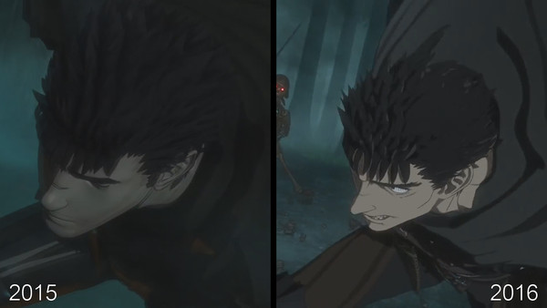 The first teaser trailer for the Berserk anime was completed in August of 2015 and released four months later in December, coinciding with the announcement of the project. But behind the scenes, the staff was finally reaching a compromise with Itagaki on how the show would actually look. The first step was to scrap all the assets they'd made for the teaser trailer and start creating 150 new character models (including battle damage models) from scratch.
