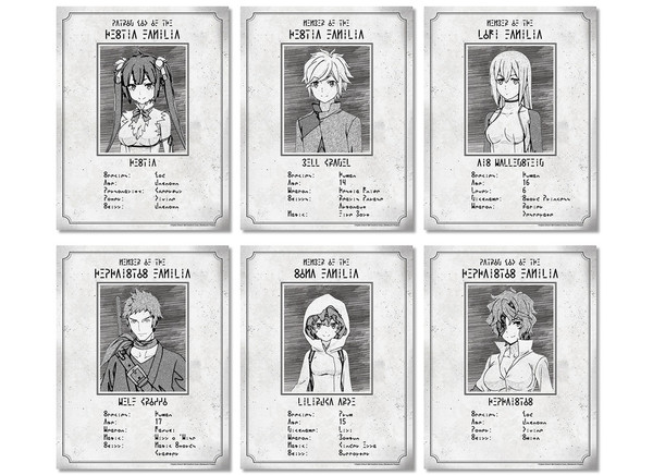 This pack of posters gives the lowdown on Hestia Familia's stats as well as their rivals and comrades Ais Wallenstein, Welf Crozzo, Liliruca Arde, and Hephaistios. The wall art makes for fun, low-key decor.