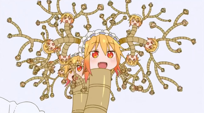 Easily the most catchy piece of 2017's groovy anime music scene is the beginning of "Aozora no Rhapsody", the opening tune to Miss Kobayashi's Dragon Maid. I'm not necessarily referring to the entire song, but just the first eight bars, in which a gleeful chorus hollers "Chu chu yeah! Please me!" over a whimsical strings riff. The rest of the song is pretty good too, but that first part is absolutely instrumental. Er, I mean, it's crucial.