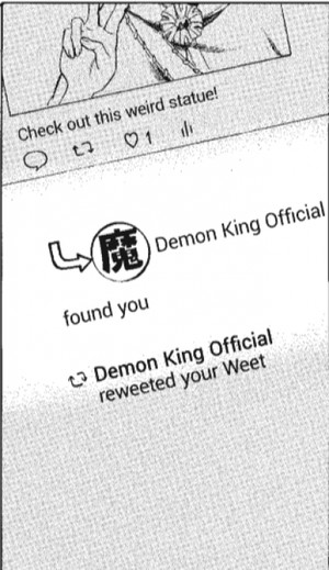 As you might imagine, this means that the gag is mostly how incredibly bad Zane is at making videos and how that eclipses his awesome power with the sword. With the ongoing glut of stories about guys with magic swords being amazing and taking down various demon lords, that makes this book stand out as both a send-up of the genre (although it's not isekai) and as a slightly more pointed look at how obsessed with internet fame the world has become. That last may actually just be a side effect of the premise, of course; this doesn't feel like a story that's got a lot riding on having a serious underlying theme. But it is there if you want to look for it, like the way that Kuku accidentally gives away her location to the bad guys with a (t)weet or how the Demon Lord himself is following Zane in order to better understand what his enemy is up to. That this is really why he's following Zane comes out in the extra chapter, which is one of the funniest parts of the book; prior to that the gags hold up for a couple of chapters before starting to feel a little stale.
