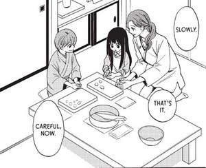 I don't know what to make of Something's Wrong With Us. Admittedly, this is partly due to not knowing the premise going in. Here I am, reading the first half of the chapter and expecting a cutesy manga about the delightful art of Japanese bean-paste confectionary, and then, murder and an innocent scapegoat and blood everywhere. But I am not sure it was just lack of expectation that was so jarring. I also think that the dissonance between the prominent focus on sweet-making and the grisly whodunnit of the main plot is so badly navigated that I am not sure what this series even wants to be.