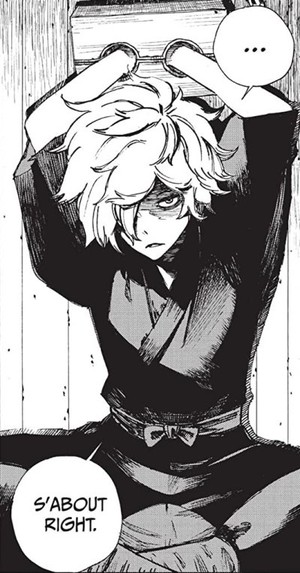 That said, it is a series that tries very hard to be about the circumstances of its historical era. Sagiri is often talked down to by others, who say an executioner is the role of men exclusively, that women have no place in the field. And the other female characters (like Gabimaru's scarred wife, or several women who are murdered) are archetypes that are very traditional and limiting. While Hell's Paradise is arguably better than a lot of its seinen contemporaries at treating its female characters with respect and dignity, their roles in the story are still limited by the confines of their society in a way that could be read as misogynistic. I think it is trying to be an exploration of how suffocating and terrible this society is for women, but that is fraught territory, especially in stories that are by and, generally about, men. I hope in later volumes we see a greater diversity of female characters who exist outside traditional social molds.