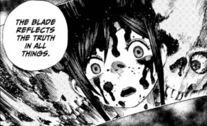 A lot of this is thanks to our two protagonists, Gabimaru and Sagiri. Gabimaru is a skilled ninja whose training (which is looking a lot like brainwashing by the end of the volume) is coming apart at the seams because of his sweet, optimistic wife. This lands him in hot water with the leader of his village (whose daughter she is, which could have implications later on), and he's set up to be captured and executed by the government. There he meets Sagiri, one of many legendary executioners who use the names “Yamada Asaemon;” she's at the prison to decide if he's a worthy addition to the decidedly shady plot the current shogun is hatching. The two of them are the odd ones in their professions, both having, or having formed, a stronger attachment to leaving people alive than to killing them, and while this has stronger consequences for Gabimaru, there's a definite feeling that Sagiri's gender isn't the only thing making her the target of her fellow Yamadas' distrust. Neither of them are sure which side of the fence they want to be on, either – although Gabimaru knows that his emotional attachment to his wife has made him not want to kill, he's not sure that he wants to live, either, while Sagiri is growing ever more conflicted about whether or not Gabimaru ought to die as well.