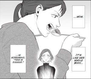 While that could make it too slow for some readers, the other, probably bigger issue is that you need to really like watching Kasuga put food in her mouth. Many of her panels are devoted to just that, and while that's not something I'm typically squeamish about, it was a bit much even for me. The point is clear – for Nomoto most of the thrill of cooking is watching someone eat what she's made, so seeing Kasuga ingest her food is a major factor in her feelings for the other woman. It can still feel a little fetishy, though, and that won't work for everyone, especially if open mouths are something that you don't particularly love staring at.