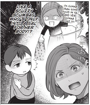 Seriously though, the 'plot' of She Loves to Cook, and She Loves to Eat is effectively a slow-roll of seasons as we watch leading ladies Nomoto and Kasuga get to know each other over their initially-spontaneous dinner date arrangements. And it's frankly adorable, as we catch snippets of their circumstances, learning more about them as we do each other. The cooking/eating segments provide a strong framework, but can initially feel a little repetitive in their cycles; it's that sense of peering in on people, getting an idea of what they deal with that drives them to this place, that becomes compelling. For one thing, this manga has no qualms addressing the everyday aggravations of sexism. Whether it's Nomoto having her passionate cooking hobby dismissed as a domestic dalliance, or people in restaurants passive-aggressively reacting to Kasuga's body type and portion preferences, the writing makes all too clear what kind of haven the pair's empathetic understanding of each other could provide.