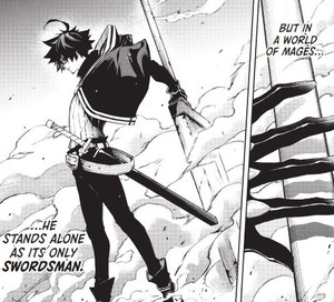 The protagonist this time around is Will, a sixteen-year-old student at Regarden Magical Academy who faces a very specific challenge: he can't use magic. Since magic is looked at as the all-powerful source of world domination in the story – and there's something to that, since the false sky is held up with it – Will's lack of spellcasting ability earns him the ire of most people, especially since he dares to be at the academy. From snooty Sion and his cronies to the truly horrible Professor Edward, Will has to let a lot wash off his back from day to day, and the reveal that he's the world's sole talented swordsman only makes his life worse. In the case of Sion, that's because he doesn't believe Will should be better at anything, but when it comes to Professor Edward, the issue is thornier. Edward is steeped in the traditions of his society and truly appears to believe that Will's sword-slinging abilities are an affront to world order, a belief that stems from the lower social strata occupied by dwarves. Dwarves, unlike elves, can't use magic, so Will's being linked to them via racism because of his abilities. It's nauseating, but sadly not unfamiliar.