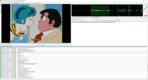 “So as it happens, Anime Los Angeles; Justin's based in Los Angeles, and so it worked out really well. He came out, we met up, and we spent an afternoon, but the key thing was we got a chance to sit down and talk to Robert. And obviously, you know, projects like these, especially something big like Urusei Yatsura, we plan this stuff out several years in advance. This was something long in the works and we talked to him about it and he said 'Well, you know hey, I still got all my scripts' and I'm in the unique position of having seen his scripting system that he's been using since basically back in the VHS days. So I was familiar with the formatting and we use Aegisub in our work, commonly used for fansubs, but it's also got a lot of professional applications. I knew the quirks of that and what to expect with his [system], so we got the opportunity to sit down with him and talk to him and say 'Hey, the problem is we can use your scripts, but they're not compatible with our system' and he goes “I wrote my script, so why don't I write something for you guys that will convert them over and format it to what you guys use?' ”