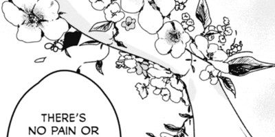 If there is such a thing as body horror by way of beauty, Bride of the Death God has it. Heroine Aibi is suffering from a mysterious disease known as “bouquet syndrome,” which causes flowers to bloom all over her body. At first, it's lovely to look at, but as the disease progresses, creator Hako Ichiro adds more and more flowers sprouting from Aibi's flesh. It's overwhelming, something that should be breathtaking and turns out to be unsettling instead.