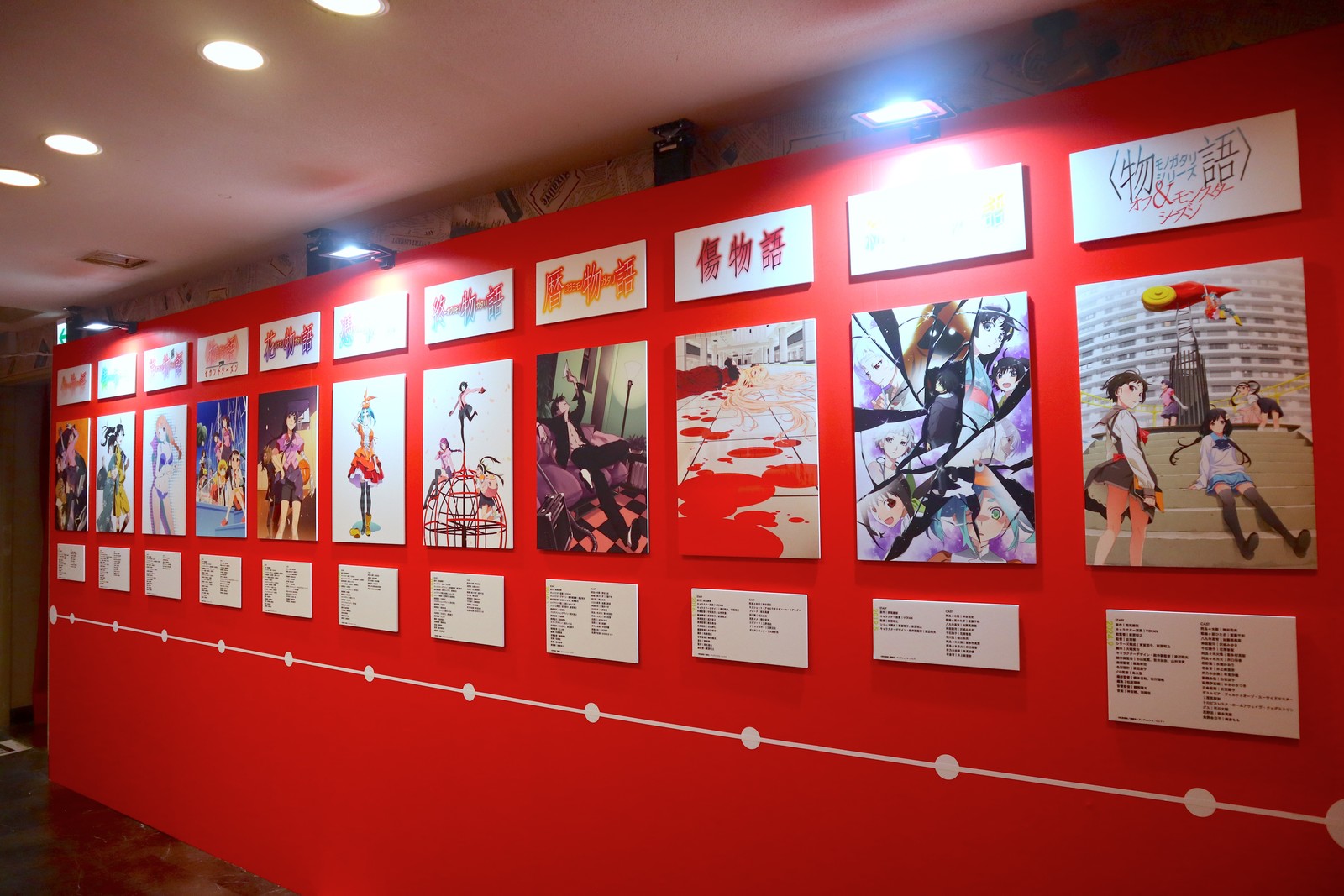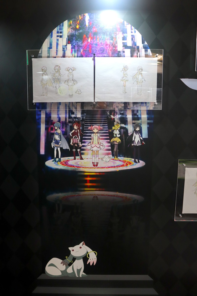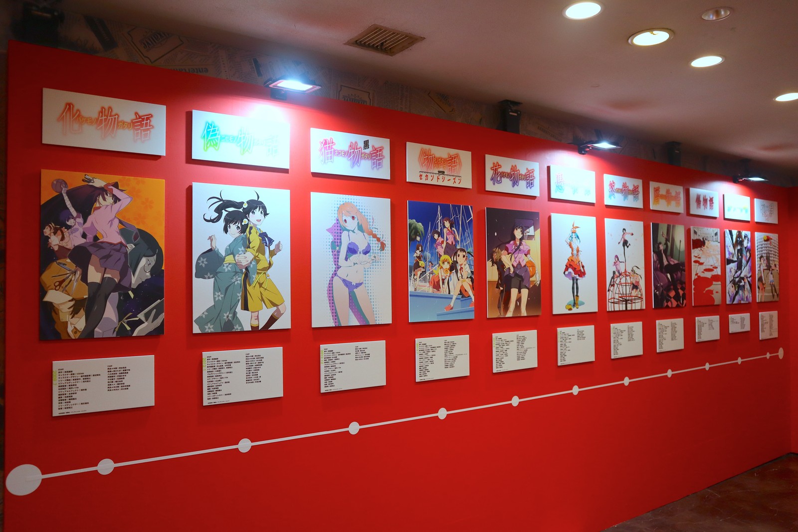 Shaft did not rest on its laurels with the success of Puella Magi Madoka Magica. The animation studio found major success with the Monogatari series starting in 2009. Opening with a large display of the Monogatari franchise and posters from the 11 series, it gets you into the mood of Monogatari from the get-go. Inside the Monogatari section, fans are surrounded by key art, storyboards, and storyboard notes from across the franchise.
