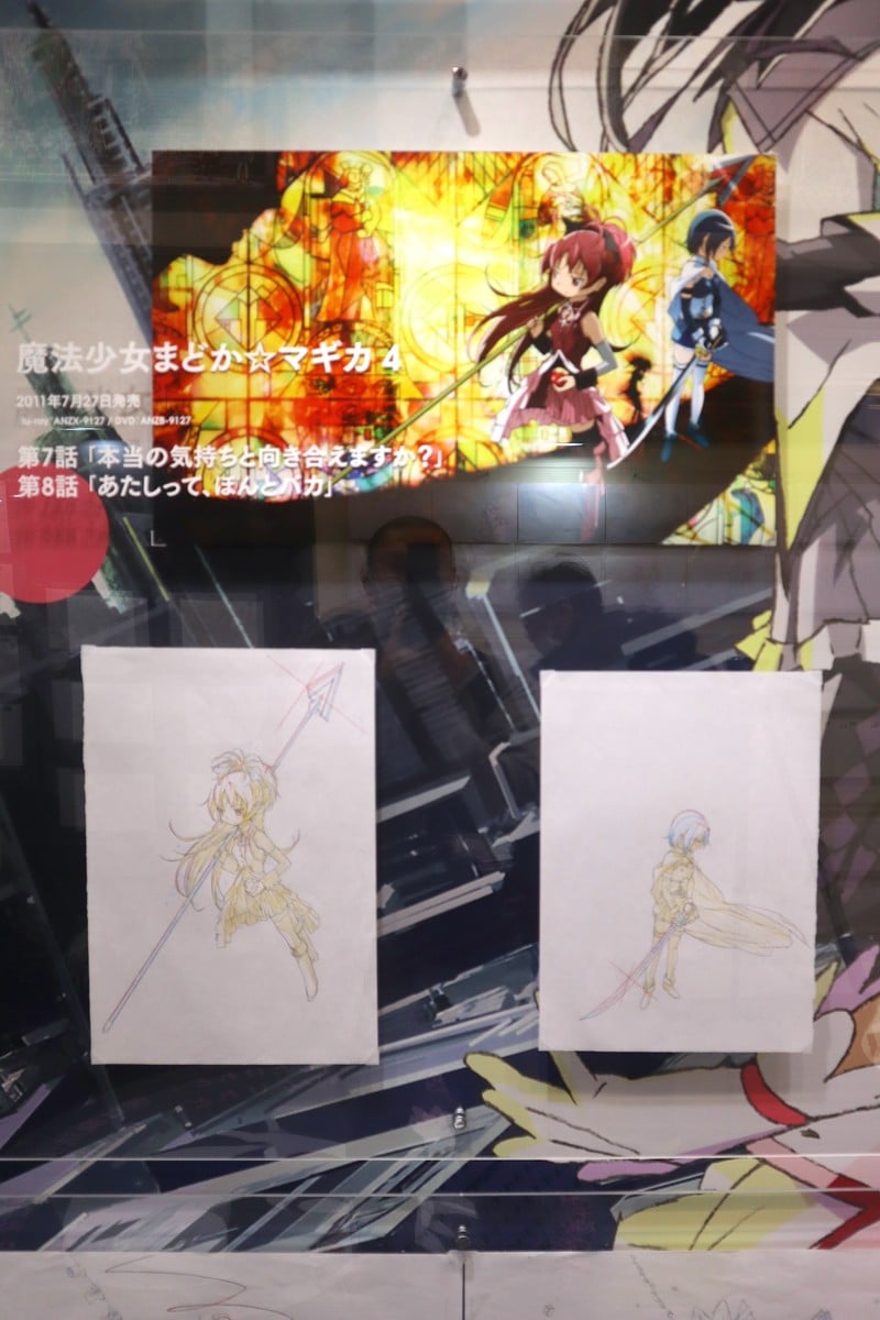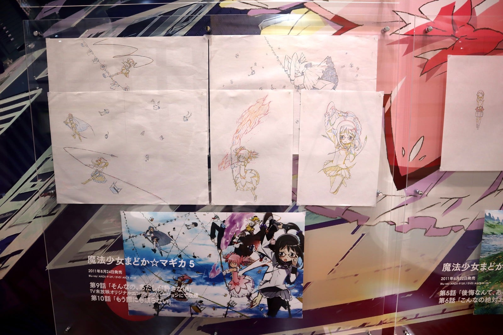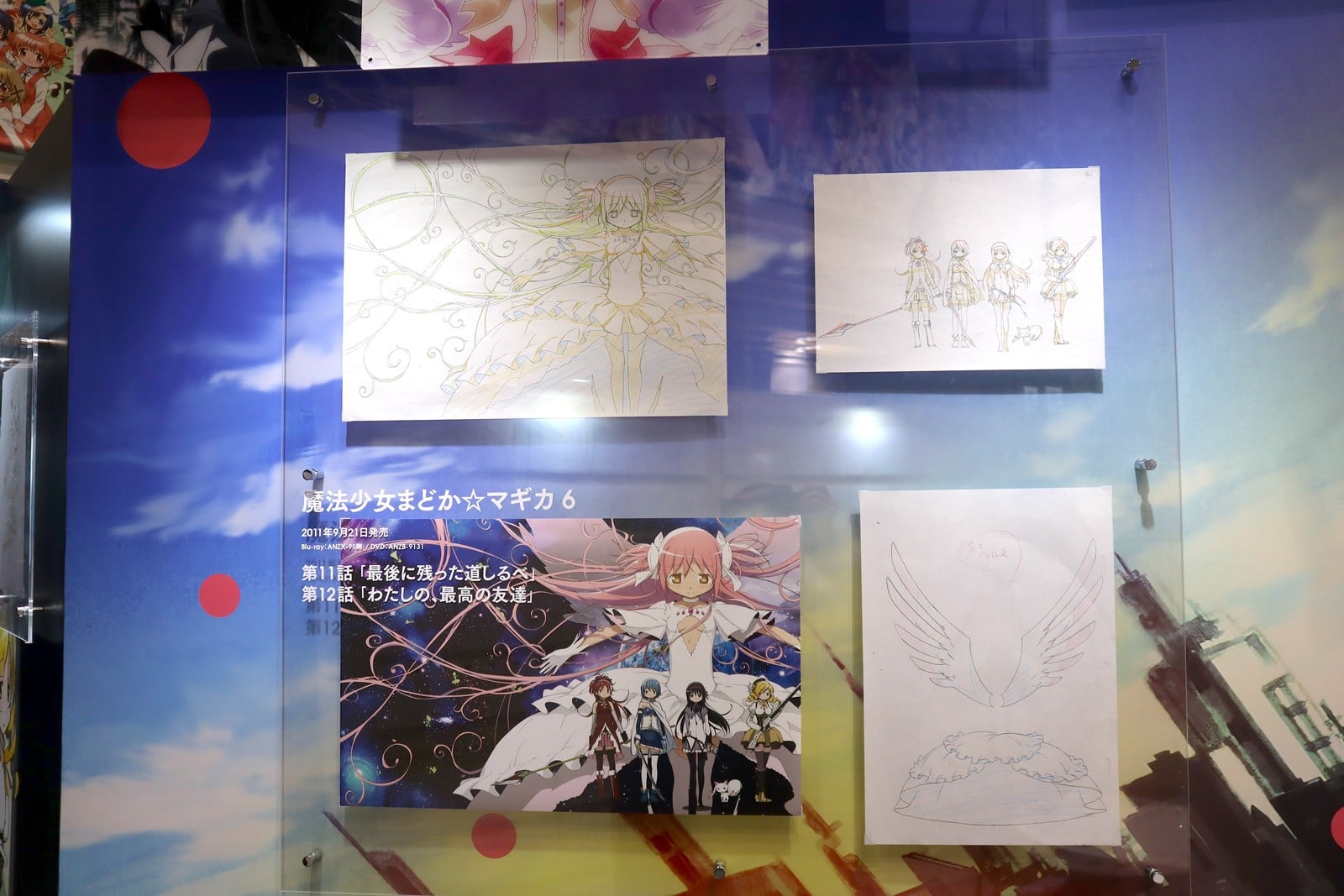Shaft did not rest on its laurels with the success of Puella Magi Madoka Magica. The animation studio found major success with the Monogatari series starting in 2009. Opening with a large display of the Monogatari franchise and posters from the 11 series, it gets you into the mood of Monogatari from the get-go. Inside the Monogatari section, fans are surrounded by key art, storyboards, and storyboard notes from across the franchise.