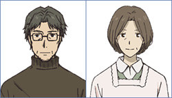 A kind couple who adopted Takashi. They both kindly watch over him, even though he keeps his distance.