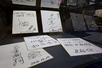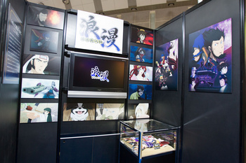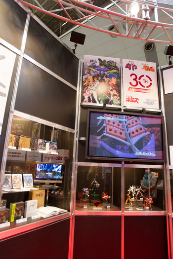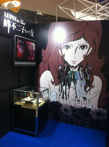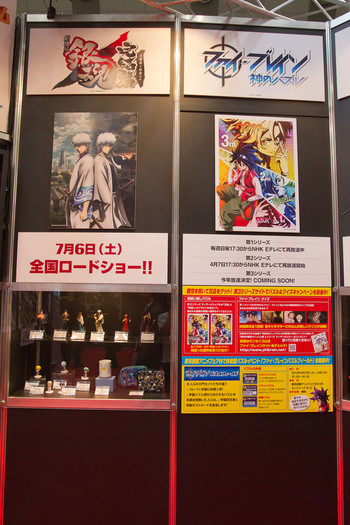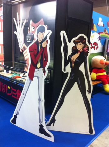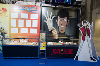Guess what? TMS celebrates Cat's Eye's 30th Anniversary this year, with a memorial DVD box and historical cast autographs on display. Lupin and Fujiko are still omnipresent, and Kamisama Hajimemashita gets a big space to exhibit some anime drawings and merchandise. Bakumatsu Gijinden Roman, Fuse and kids movie Hanakappa are well promoted too. On the opposite side of the booth, we find Panda! Go, Panda! (who–guess what?–is celebrating its 40th anniversary!)'s merchandise and Cardfight Vanguard's corner.