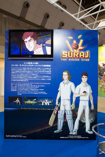 Inside the booth there is also a big panel about Suraj, "India's New Kyojin no Hoshi"–probably the first anime about cricket ever produced!
