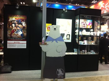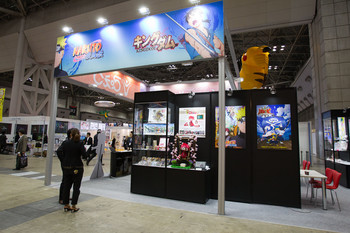 Like Sho-Pro and Toei, Pierrot is enjoying the apparent end of the publishers' anti-Ishihara embargo and Naruto comes back to grace the booth together with Kingdom on one side, escorted by cute character Pikku, a red raccoon dog who's getting his own anime this year, while Shirokuma Cafe beckons us in the other. Inside the booth there is a mini Creamy Mami exhibition, celebrating her 30th anniversary, with posters and merchandise on display.