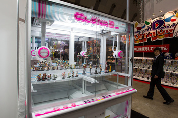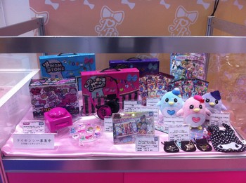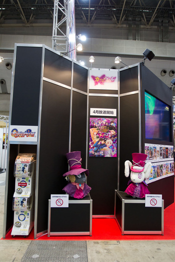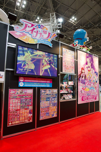 Gundam UC and Code Geass Akito the Exiled 2 (expected in the theaters this Summer) and Oz the Reflection (Code Geass : Sōbō no Oz) also boast trailers on big screens. The Gundam franchise takes up a big corner (very aptly named "Legend of Gundam") with mecha figures and a gashapon machine on display plus a dedicate show reel. Tired of big robots and all the fighting? No problem, Aikatsu (short for Idol Katsudō, literally "Idol Activity") is coming to the rescue with its cute idol girls anime based on the popular trading card game.
