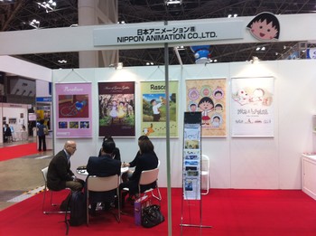Nippon Animation's booth is a bit empty, with no new anime to show but a lot of lovely Rascal merchandise new for 2013: plushies, pens, bags, together with other cute characters like Chibi Maruko-chan and English leaflets of their works Anne of Green Gables, Rascal, From the Apennines to the Andes, Perrine Story, The Adventures of Tom Sawyer, Dog of Flanders and Little Princess, now all digitally remastered in HD.