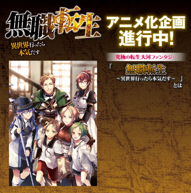 La série de Light Novel signée Rifujin na Magonote et illustrée par Shirotaka, intitulée Mushoku Tensei: Jobless Reincarnation, est en cours d'adaptation en anime. C'est ce que le site MF Books, des éditions Kadokawa, a révélé vendredi, sans en dire davantage.