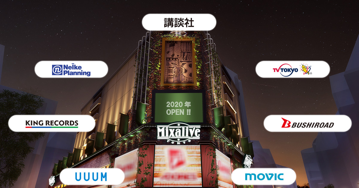 La maison d'édition Kodansha a annoncé vendredi l'ouverture d'une salle de divertissement de neuf étages, appelée le Mixalive TOKYO, à Ikebukuro, le 19 mars prochain. Le bâtiment pourra accueillir des événements « live » pour des mangas, romans, livres pour enfants, ouvrages pratiques, et différents magazines. Le bâtiment sera partagé entre la maison d'édition, King Records, TV Tokyo, Nelke Planning, Bushiroad, MOVIC, et UUUM.
