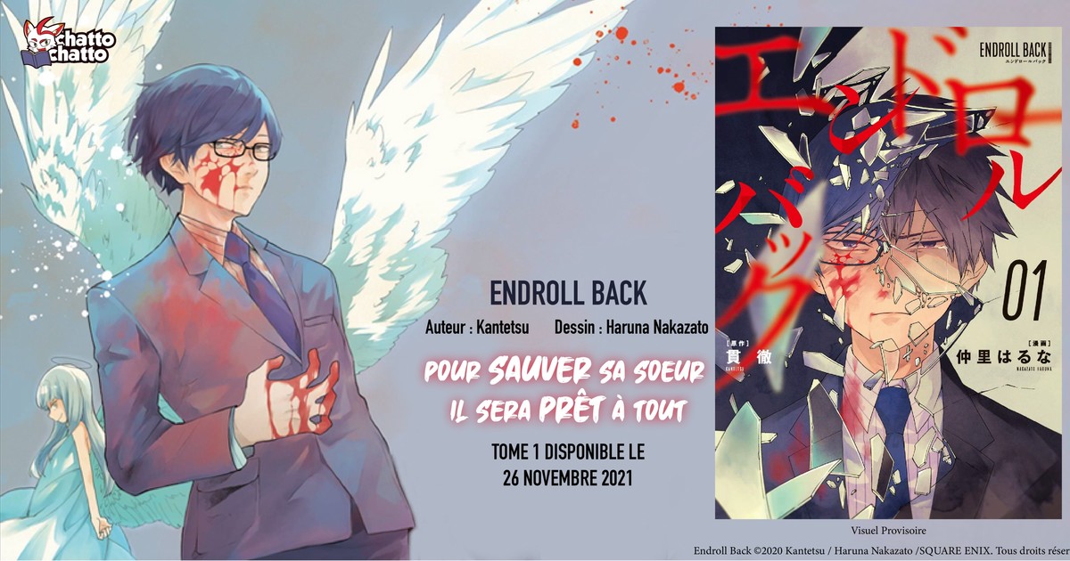 Les éditions Chattochatto annonce la sortie du manga Endroll Back. Ce thriller conclu en trois tomes verra son premier volume paraître le 26 novembre prochain.
