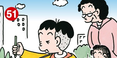 Le titre st suivi depuis avril 1982 dans le Yomiuri Shimbun. Format quatre-cases, cette comédie familiale suit Kobo Tabata un enfant vivant avec sa petite sœur, ses deux parents, et ses grands-parents ; soit trois générations soue le même toit.