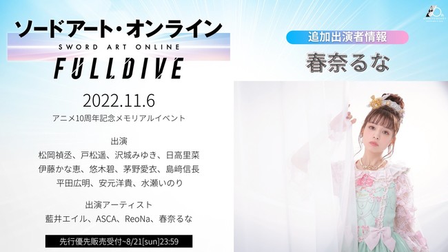 Les artistes Eir Aoi, ASCA et ReoNa, qui ont interprété les thèmes musicaux de l'anime, seront de la partie. Aux côtés de FictionJunction, ils interpréteront le thème de ce dixième anniversaire : Sôkyû no Fanfare.