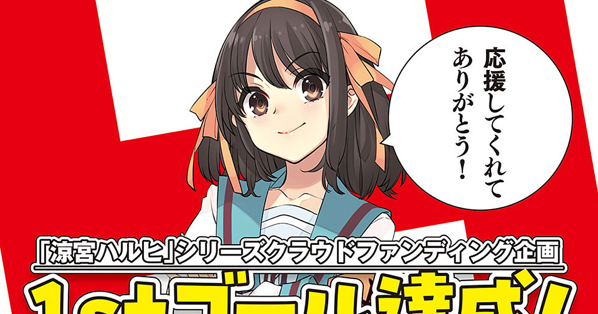 Le compte X officiel de la série de light novels Haruhi Suzumiya de Nagaru Tanigawa a annoncé aujourd'hui que la campagne de financement participatif qui a ouvert vendredi dans le but de créer une chanson et un clip vidéo, avait atteint ses deux objectifs en un jour seulement. Elle restera malgré tout ouverte jusqu'au 15 janvier. A l'heure de cet article, la campagne a récolté un total de 25 847 487 yens.