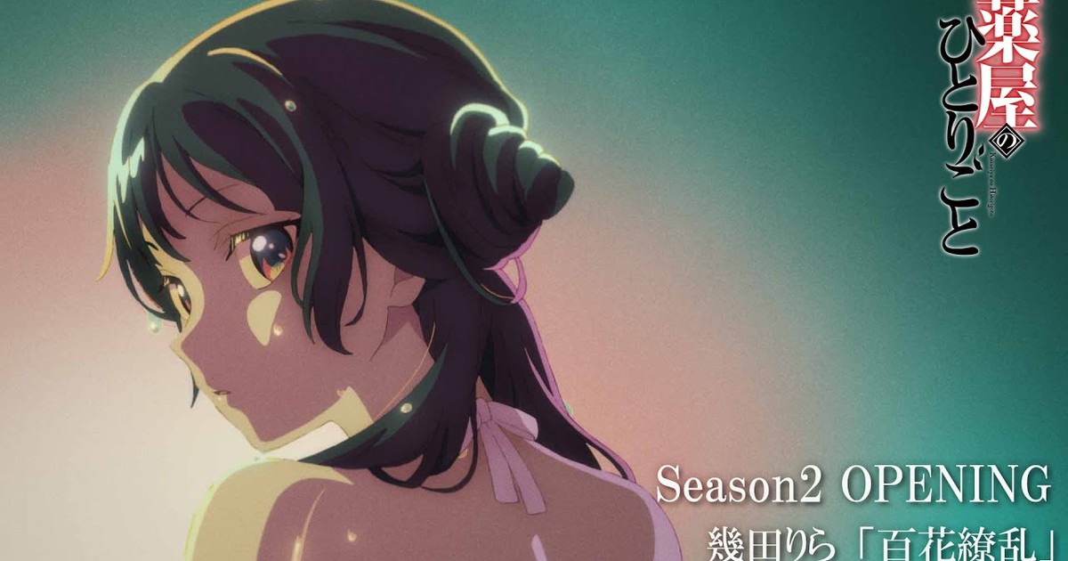 TOHO animation a mis en ligne aujourd'hui le générique d'ouverture sans les crédits de la deuxième saison de l'anime adapté des light novels Les Carnets de l'Apothicaire (The Apothecary Diaries, Kusuriya no Hitorigoto) de Natsu Hyûga et Touko Shino. Lilas Ikuta (BELLE, Dead Dead Demon's Dededede Destruction) interprète l'opening, Hyakkaryôran, marquant son premier opening pour un anime en solo (elle est la chanteuse du groupe YOASOBI).