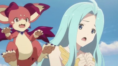 Cette seconde saison démarre en douceur. On expose à nouveau et brièvement les enjeux et les personnages, et l'histoire de ce premier épisode ne fait pas avancer grand-chose (en dehors de sa toute dernière scène et de son épilogue post-générique). Narrativement, on est comme d'habitude dans les codes du jeu de rôle nippon. Nos héros rencontrent une nouvelle alliée temporaire (mais qui pourrait bien réapparaître plus tard) et continuent de looter de nouvelles capacités, chaque créature originelle vaincue étant ensuite invocable en combat par Lyria.