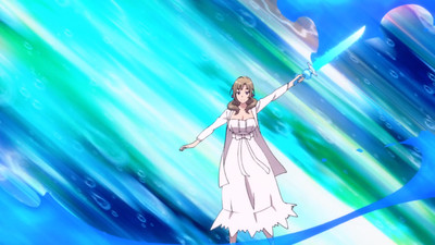 On passe alors par tous les éléments classiques d'un jeu : rencontre avec un personnage guide, le roi du palais de l'arrivée, la création du compte et le premier cadeau : une arme. Masato, affublé du titre de héros normal, va choisir son épée et sa mère, toute badass qu'elle est, ne se formalise pas : elle prend les deux restantes. Avec elle, on sent bien que l'on va bien se marrer.