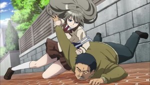 Cela a au moins le mérite d'être divertissant, d'autant qu'Asuka a une arme plutôt peu commune puisqu'elle utilise un couteau à lame retourné venu des Philippines, le karambit. Avouez qu'on ne voit pas ça tous les jours ! Et elle s'en sert très bien. La série est éminemment trash et se permet même des plans bien plus appuyés et sanguinolents que son homologue papier. La scène face à Kim Gang-Su n'est par ailleurs pas la première à venir en tête même si c'est la plus spectaculaire. La scène de la boîte façon Seven est beaucoup plus traumatisante bien que la mise en scène manque d'impact.