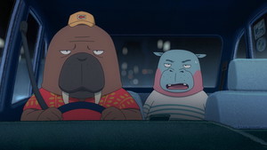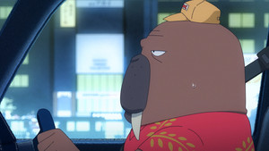 Visuellement, on a de nouveau droit à un anthropomorphisme qui semble être décidément bien à la mode en ce moment dans l'animation japonaise, mais on est très loin des délires comiques d'un Africa Salaryman ou d'un Aggretsuko. Il y a bien un peu d'humour ici mais plutôt pince-sans-rire. En revanche on retrouve la même dimension sociale et cette peinture d'un univers professionnel à la sauce nippone (ah ces petits napperons si typiques des taxis japonais !).