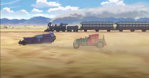 Après une journée de pause, la course transaméricaine peut reprendre et son départ est calé sur celui d'un train de voyageurs pour rajouter une dose de grand spectacle. Le but est de déterminer qui, des coureurs ou du train, arrivera en premier au grand pont ferroviaire du Missouri. Le show est toutefois un peu pipé et n'a pour vocation que de faire du marketing supplémentaire, les voitures de course étant censées être plus rapides.