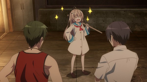 Dans un monde idéal, il y aurait presque du Fumiyo Kôno dans cette description méticuleuse des besoins nécessaires à la création d'électricité, dans cette peinture des petits gestes anecdotiques qui façonnent tout un quotidien, et donc tout un présent. Sauf que la cohérence de Kôno ne trouve pas d'équivalent ici, puisqu'incarnée par le protagoniste énonçant verbalement, schéma à l'appui, les besoins en cours. La mise en scène échoue donc à imprimer une symbolique, un caractère fondamental à cette reconstruction. Une fois de plus, tout ici est illustration plate et vaine de ce qui devrait s'enquérir d'un caractère presque sacré. Pour autant, les relations entre les personnages trouvent ici un charme qu'elles n'avaient pas vraiment jusque-là. L'humanisation progressive d'Atri, bien que sans surprise, joue pour beaucoup dans l'appréciation de ces vingt minutes partageant finalement les mêmes défauts que les épisodes qui les ont précédés.