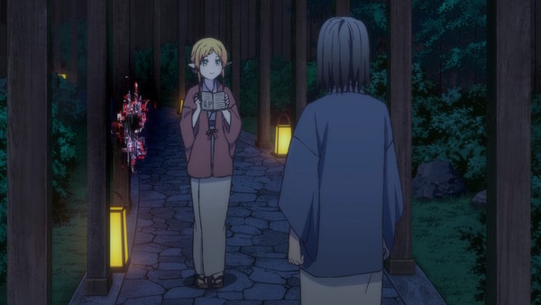De nouveau trois dans l'appartement, nous retrouvons l'oncle dans l'autre monde, à savourer les fameuses sources chaudes évoquées par l'elfe précédemment. Il y a assez peu de sérieux dans cet épisode, qui est saupoudré des habituels gags et relations tarabiscotées entre les personnages. C'est le retour du groupe de l'héroïne qui met en péril le plan drague de l'elfe, qui a pourtant droit à une séquence de massage mémorable, amenant peut-être au gag le plus drôle de toute la série quand les choses semblent aller dans une direction inattendue mais espérée.