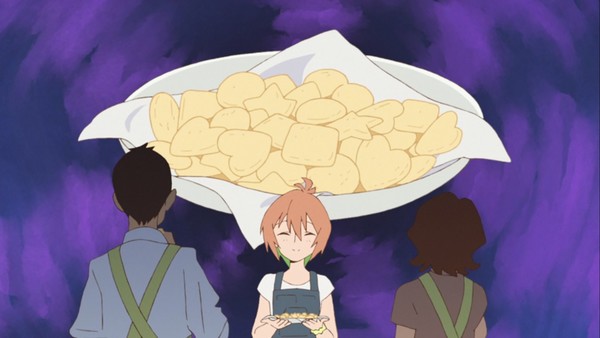 Une fois cette étape réalisée, il convient de profiter de ce qui est peut-être le meilleur épisode de la série jusqu'à présent. Non pas parce qu'il nous invite de nouveau à profiter d'une mise en scène touchant au sensoriel, mais bien parce qu'il fait honneur à son titre, et de fort belle manière. A la première moitié abordant pour la énième fois le quotidien (et le savoir-vivre) de personnages toujours inintéressants, la deuxième donne une place fondamentale au… Do It Yourself!!, oui ; avec un intérêt pour les détails, pour l'artisanat, pour les petits plaisirs d'animation et d'acting que l'on attend d'un titre pareil. L'anime atteint presque le stade du flow, vous savez, cet instant où l'on est tellement immergés dans notre tâche que l'espace et le temps disparaissent.