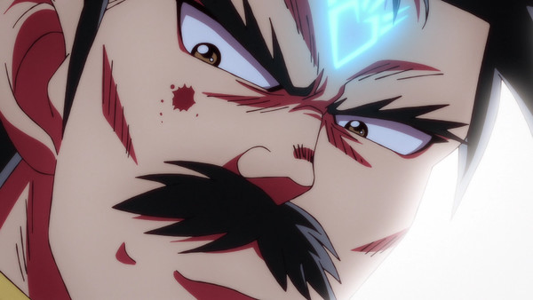 Le combat entre les deux chevaliers dragons et le général des armées du Mal se poursuit donc sur son faux rythme. Il est donc surtout question de stratégie pour doser les escarmouches et ne pas commettre l'irréparable, résumant ainsi le combat à une passe d'arme unique sur laquelle se concentre toute l'emphase de cet épisode… Cependant, une autre donnée s'invite au problème : l'amour filial entre père et fils, s'exprimant en sauvetages sacrificiels réciproques. Mais c'est en s'ouvrant à cette affection filiale que Baran s'ouvre de nouveau à sa part humaine. Ainsi, Daï assiste de manière impuissante, tout comme nous, à une action douloureusement familière pour lui, le geste d'un tuteur prêt à donner sa vie pour protéger son héritier. L'émotion est palpable, au prix de quelques longueurs.