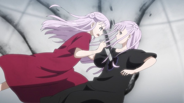 Kûmi et Jiiro font face à Façade et au clone. Avant l'affrontement, c'est au tour de Kûmi de se remémorer le passé. C'est un plongeon malaisant dans les entrailles de l'empire raciste (comme c'est étonnant) qui cherche à redonner aux humains la suprématie en créant une armée d'oracles clonés élevés dans un lavage de cerveau absolu où seule la mort est une délivrance, prête à l'accepter comme un devoir et un cadeau telle des kamikaze. Kûmi échappe à ce destin après avoir reçu de la compassion. Son duel contre elle-même s'achève sur un besoin de fuir, de voir la lumière loin des murs du laboratoire qui lui a servi de prison. Au commande de tout le département, Mezami bien entendu, et plus haut Bakhra qui rend des comptes aux leaders de l'empire. Fin du flash-back, retour au réel et désormais l'affrontement entre Façade et Jiiro, chacun épaulée de leur oracle, est imminent.