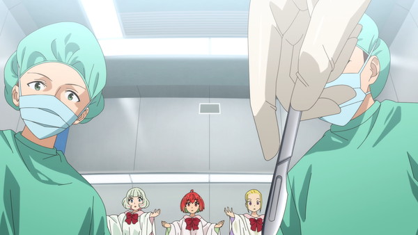 Afin de remédier à ça ,la maestra leur propose un travail dans un hôpital où les jeunes assistantes vont devoir chanter pendant une opération chirurgicale. Comprendre avec quelqu'un passant sur le billard. Comme voir du sang et des organes c'est mentalement difficile, Kana a pensé à s'entraîner en regardant des films gores. C'est parti pour une soirée cinéma de l'extrême afin d'être fin prête pour le grand jour.