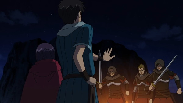 Nous approchons de la fin de la mission et Yotsuya est toujours aussi froid et calculateur qu'au début mais les dialogues qu'il a avec Tokitate nous apprennent que ça n'est pas un simple sociopathe. Il croit que ce qu'il vit est un jeu en VR. Comment lui en vouloir quand autant de concepts en sont tirés, qu'il s'agisse de la résurrection, des logs de jeu, du système d'équipement, de classe, l'affichage tête haute de carte et information. Bref, impossible de penser de prime abord qu'ils sont dans une autre réalité. Et si c'était en réalité le cas ? Comment réagirait notre groupe d'ados face à cette information ? Le titre prendrait un tour bien plus intéressant si c'était le cas. SAUF que nous sommes déjà à l'épisode 8 ! Cela arrive bien tard pour une série qui est prévue en 12 épisodes.