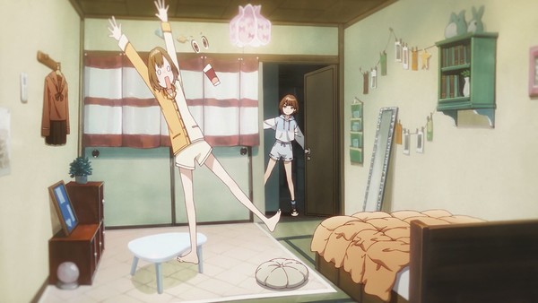 Car il y a un plaisir instantané, naturel à suivre l'évolution des protagonistes découvertes la semaine dernière. Le chara-design, d'une élégance rare, se double d'abord d'un acting impeccable : l'animation des personnages est un vrai régal pour les yeux, tant dans les instants de pure comédie que lorsqu'il s'agit d'exprimer les émotions d'une manière plus subtile. La nouvelle arrivante en est un très bel exemple, comme en témoigne la révélation de son visage fermé dans le reflet de son téléphone portable. Et puis il y a la mise en scène, d'une rare maîtrise. Les idées visuelles se succèdent (le plan cité précédemment qui trouve son écho final dans un selfie témoignant de l'évolution de la jeune fille) et l'épisode de ruisseler d'une sensibilité à nulle autre pareille. Oubliez les métaphores et affirmations lourdingues du pilote : cette deuxième livraison s'exprime avant tout par des images d'une beauté constante, toujours dans une démarche de prolongement thématique.