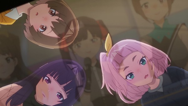 Et elles sont plutôt tranquilles, ces vingt minutes. Le scénario nous immerge enfin dans l'élaboration du premier titre du groupe, en accompagnant son quotidien de tranches de vie où chaque membre se découvre progressivement. L'ambiance est légère, et doit donc son principal intérêt à cet enjeu sous-jacent : la mère de Kano est la productrice du groupe qu'elle a fini par quitter. L'occasion pour chacune de révéler leurs solitudes respectives, et pour le récit d'évoquer de nouveau leur besoin impérieux de nager en groupe. Et comme on n'avait pas vu ou parlé de méduse pendant deux épisodes, la série en profite pour faire ressortir sa métaphore du placard. Allez, c'est quand même infiniment moins lourd que lors du premier épisode.