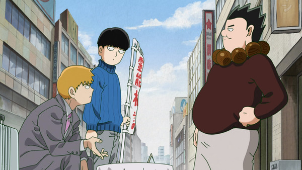 Et voici que les Pieds Nickelés de la chasse aux esprits qui s'ennuient ferme, le chaland se faisant rare, partent à la pêche aux affaires dans un bled. La nouvelle idée brillante de Reigen ? Aller séduire les gogos qui croient aux légendes urbaines. Alors en mode camelot, le voici avec Mob en train d'attendre le client. Et bien sûr, ils envahissent le territoire d'un autre médium, qui évidemment se doit aussi être le meilleur du monde.