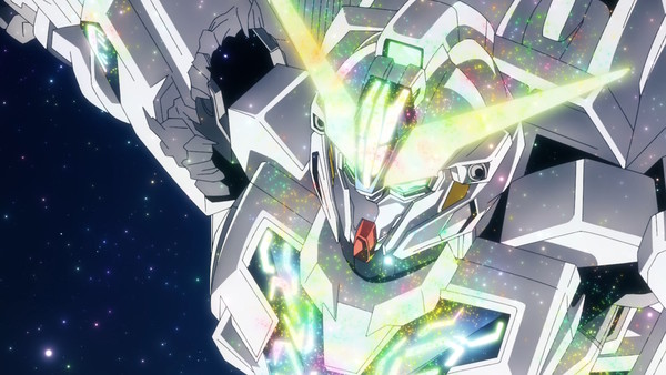 Quel final ! Entre action et manœuvre politique, la série réussit à conclure son intrigue sans fausse note. La fusion finale, l'apparition des disparus façon esprit Newtype, tout cela fait beaucoup penser à l'Universal Century, d'ailleurs ce final c'est un peu ce que les fans de Gundam appelle du « Newtype Bullshit », mais franchement qu'est-ce que c'est beau, qu'est-ce que c'est grisant ! Un mecha arc-en-ciel ? Bravo les lesbiennes, comme on dit ! Cet épilogue pioche dans ce que la saga a fait de mieux tout en traçant son propre chemin, difficile d'ajouter quelque chose après un tel épisode qui nous présente même une ellipse façon « que sont-ils devenus ».