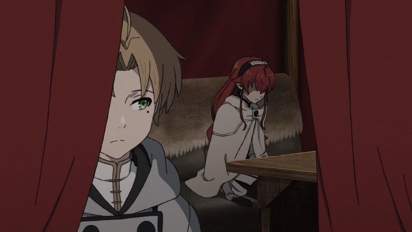 Un épisode beaucoup plus calme que le précédent mais rempli d'émotion qui amène énormément de changements pour la suite. Déjà Ruijerd quitte le groupe mais nous avons aussi des nouvelles du reste des personnages du début de la série et c'est l'hécatombe. Le dernier tiers fait évoluer la relation entre Eris et Rudeus vers une direction surprenante quoique pas inattendue et le final laisse dans une certaine incompréhension avec un héros hagard, en plein désarroi. L'animation n'a pas besoin d'être incroyable mais elle est quand même propre, avec des rêves cauchemardesques d'un Rudeus qui se remet difficilement de la rencontre avec une des Sept Puissances et surtout une mise en scène très appuyée autour de la symbolique d'un verre de vin plutôt bien trouvée quoi qu'ils auraient pu nous éviter le montage flash-back alterné.