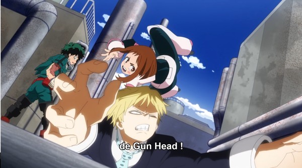 En tout cas, les professeurs autorisent le match à continuer. Eux aussi ont besoin de jauger le potentiel danger que représente l'alter d'Izuku… Le combat reprend et dans une situation de mêlée générale, Minoru et Mina s'en sortent très bien avec leurs nouvelles techniques, mais Nirengeki et Reiko n'ont pas dit leurs derniers mots.