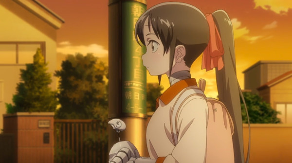Alors qu'elle connaît toutes les règles de sécurité pour les piétons, elle a tendance à suivre celles-ci, sans trop se poser de question. Si les choses sont un peu différentes, ils arrivent à s'en sortir grâce à la curiosité très développée de Mamoru. Malgré tout, certains codes sociaux ne leur ayant pas été inculqués, ils ne comprennent pas certains signes des humains, et quand une voiture s'arrête pour les laisser traverser, on est proche du bug. Après moult détours, une fois les courses récupérées, ils se retrouvent dans une situation compliquée lorsqu'une panne générale coupe tout GPS. Alors qu'ils se morfondent dans un parc, Mina écrit sur le sable ce qu'elle sait : l'adresse de Takuma. Et c'est encore grâce aux observations du petit Mamoru que tous deux retrouvent le chemin de la maison, après avoir bien tourné en rond.
