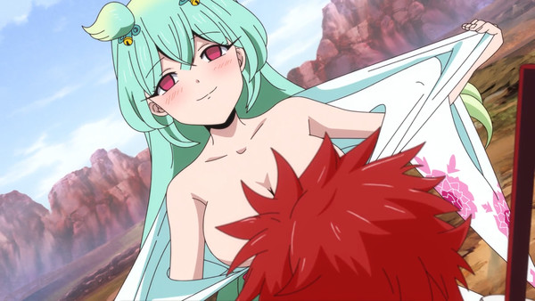 C'est en tout cas un indicateur du reste de l'épisode, puisque l'on enchaîne avec une très longue scène de pur fan service où Tsugumi se colle à Musashi sous l'œil d'un Kojirô jaloux, et va même jusqu'à se dévêtir devant le héros en herbe. La jeune fille est passée de personnage intéressant sortant d'une manipulation psychologique au rang de simple objet de fantasme en un instant. C'est vraiment dommage, car il y avait mieux à faire pour introduire le personnage dans l'aventure que de montrer ses seins. C'est triste de la réduire à sa poitrine si rapidement dans l'histoire, d'autant plus qu'elle n'a que 14 ans... Quoiqu'il en soit, cela offre une pause légère au spectateur après une bataille éprouvante psychologiquement. Espérons que la série reparte très vite sur de meilleurs rails.