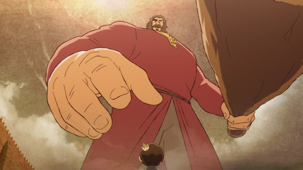 C'est au détour d'un plan anecdotique mais troublant, cadré depuis le dessous d'un fauteuil, que l'on comprend que ce vingt-et-unième épisode aura une couleur particulière. Le réalisateur de l'épisode, Shôta Goshozono, a été choisi pour représenter ce qui restera sans doute le climax de cette saison : l'affrontement inévitable entre père et fils. Il nous offre des séquences d'animation d'une rare fluidité pour une production japonaise, avec une caméra virevoltante autour des personnages. On ressent ainsi l'ampleur d'un combat aussi spectaculaire que psychologique, et l'on constate aussi tout le chemin parcouru par le jeune prince en qui personne ne croyait. Car au-delà des effets de style et des escarmouches, Bojji devra aussi s'affirmer en prenant de lourdes décisions. Et même lorsque la lame libératrice s'abat, il semble encore y avoir tant et tant de choses à dire…